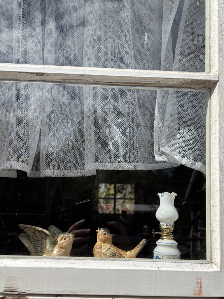 med en fågel på utsidan